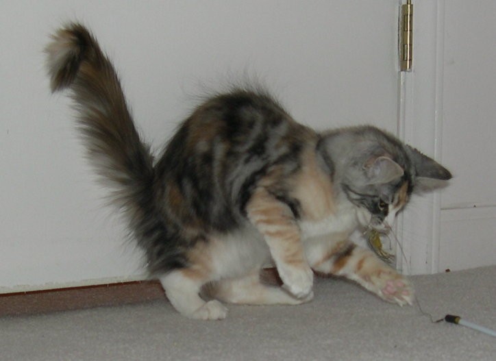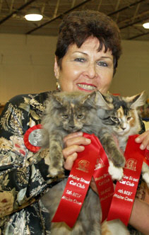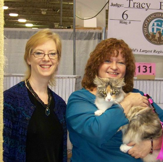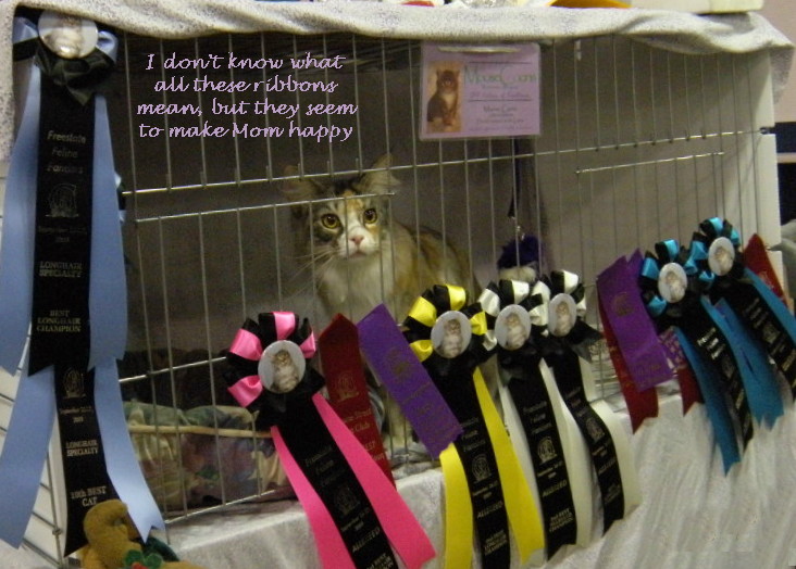 Her parents are: CH Just Cat NN Acey Mac of Makanacoon & CH Makanacoon It's All About Me